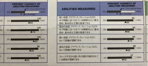 TOEIC 238回の結果が郵便で届いた。アビメを確認。 スコアは既に書いたようにL485, R470で955点。 www.englishlearner-m.net リスニングを前回の237回と比較。 左側が前回の495点の時の結果で、右側が今回の485点の結果。前回が1ミス(?)で今までで最高の出来…