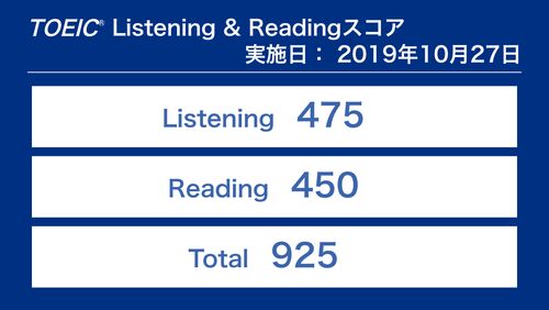 TOEIC(第244回)の結果が発表された。 結果は、L475,R450。合計925。 9月のテストではほとんど準備できずに受験して大きくスコアを下げた。今回の10月のテストは多少準備した。 しかし、残念ながらスコアは下げ止まらず、今年の最低点を更新。 ちょっとショッ…