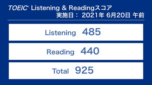 TOEIC(第270回)の結果が、オンライン発表された。 結果は、L485,R440。合計925点。 この前のテスト(第266回)と比べて、マイナス30点。 リスニングのスコアは変わらず、リーディングがマイナス30点。 リスニングは難しかったので、なんとか耐えたなという感想…