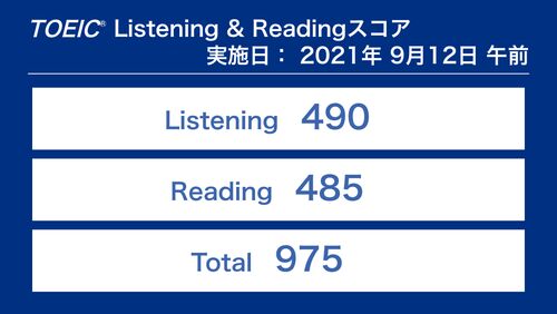 TOEIC(第276回)の結果がオンラインで発表された。 結果は、L490,R485。合計975点。 テスト当日、受験会場が教室くらいの広さで、席が中央の一番前だった。 音源にいちばん近い席。 ちょっとツキがあるかなと思った。 2,3メートルの距離でリスニングの音声…