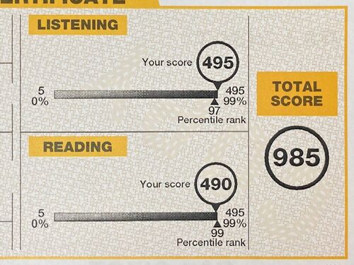 TOEIC 352回のスコアシートが届いた。 スコアは、L495, R490で985点。 リスニング、リーディングそれぞれのPercentile rankは、97と99。 リスニングのアビメ(ABILITIES MEASURED)。 テストを受けていて、PART3, 4がかなり難しく感じたが、その印象通りの結果…