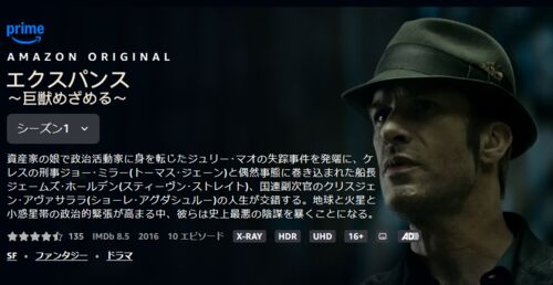 『アセンション』を見てもまだSFの気分だったので『エクスパンス~巨獣めざめる~』のシーズン1を観てみた。 いつものように英語音声で日本語字幕。 シーズン1は全体で10話。1話が45分前後。 資産家の娘で政治活動家に身を転じたジュリー・マオの失踪事件を…