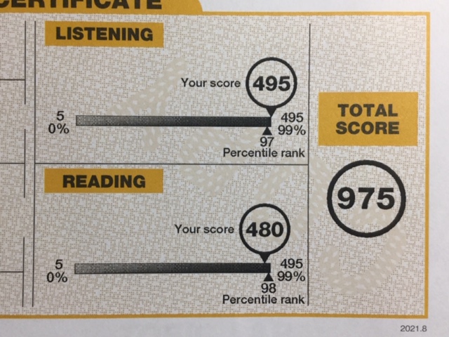 今までテストを受けてきてこういうものだとはわかっているが、リーディングのスコアもリスニングみたいに少し緩くしてほしいと思わなくもない。